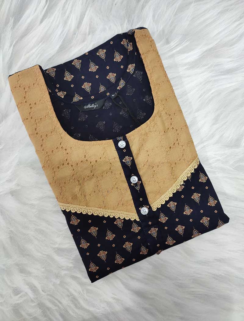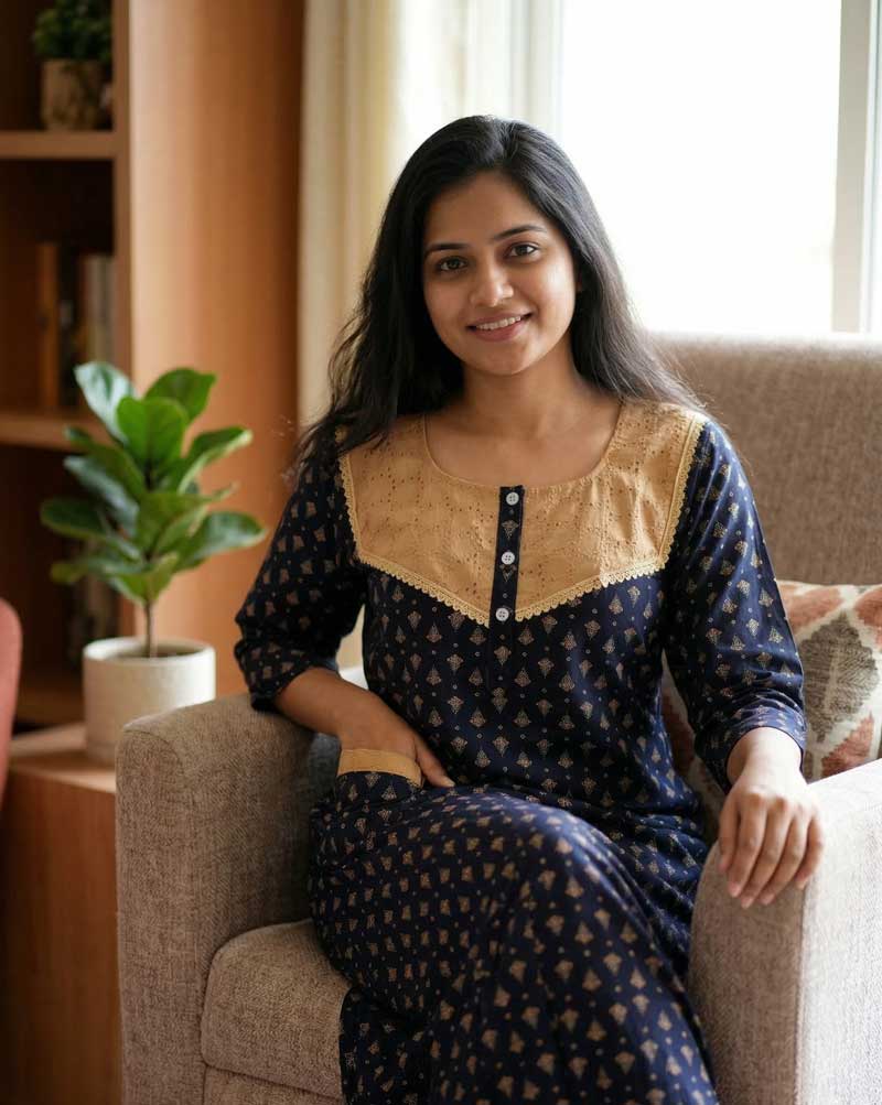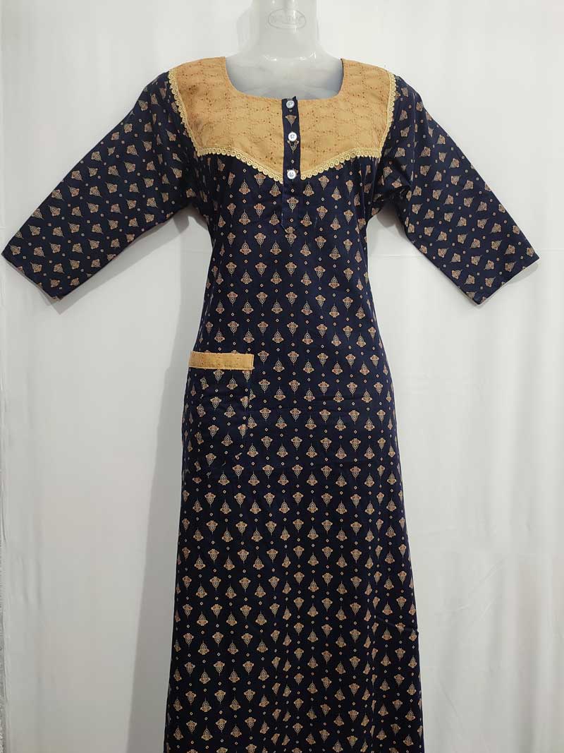 Comfortable Churidar Model cambric cotton nighty -55 inches long – Dark Blue