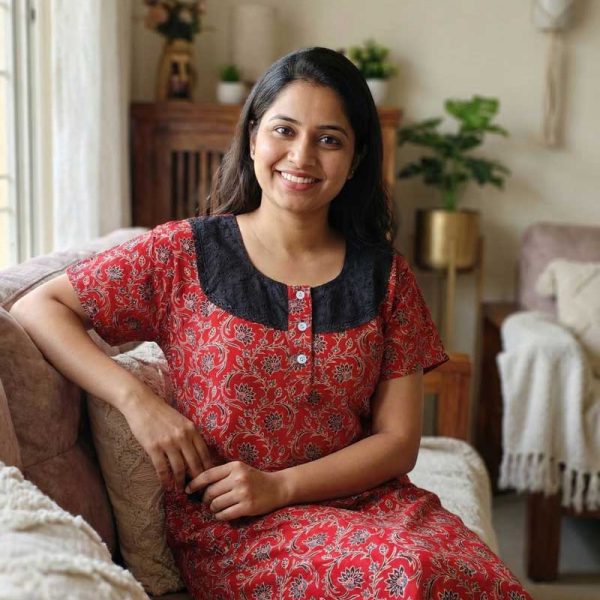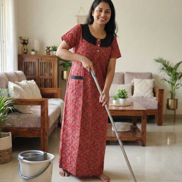 This nighty can be hand washed or a normal machine washed with cold water. Please make sure to dry the nighty in a light shade away from direct sunlight.