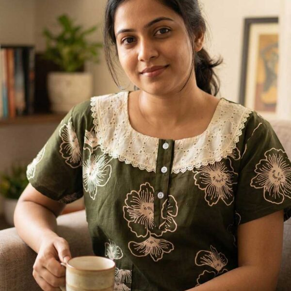 Comfortable Cotton Nighty With Buttons, 57 Inches Long – Pistha Green