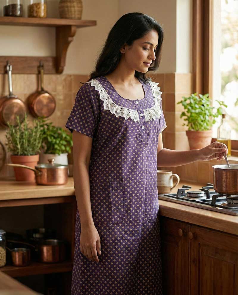 Comfortable Churidar Model Cotton Nighty – 55 Inches Long