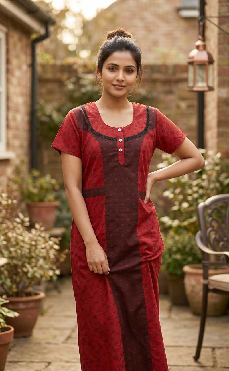 Comfortable Churidar Model Cotton Nighty, 55 Inches Long