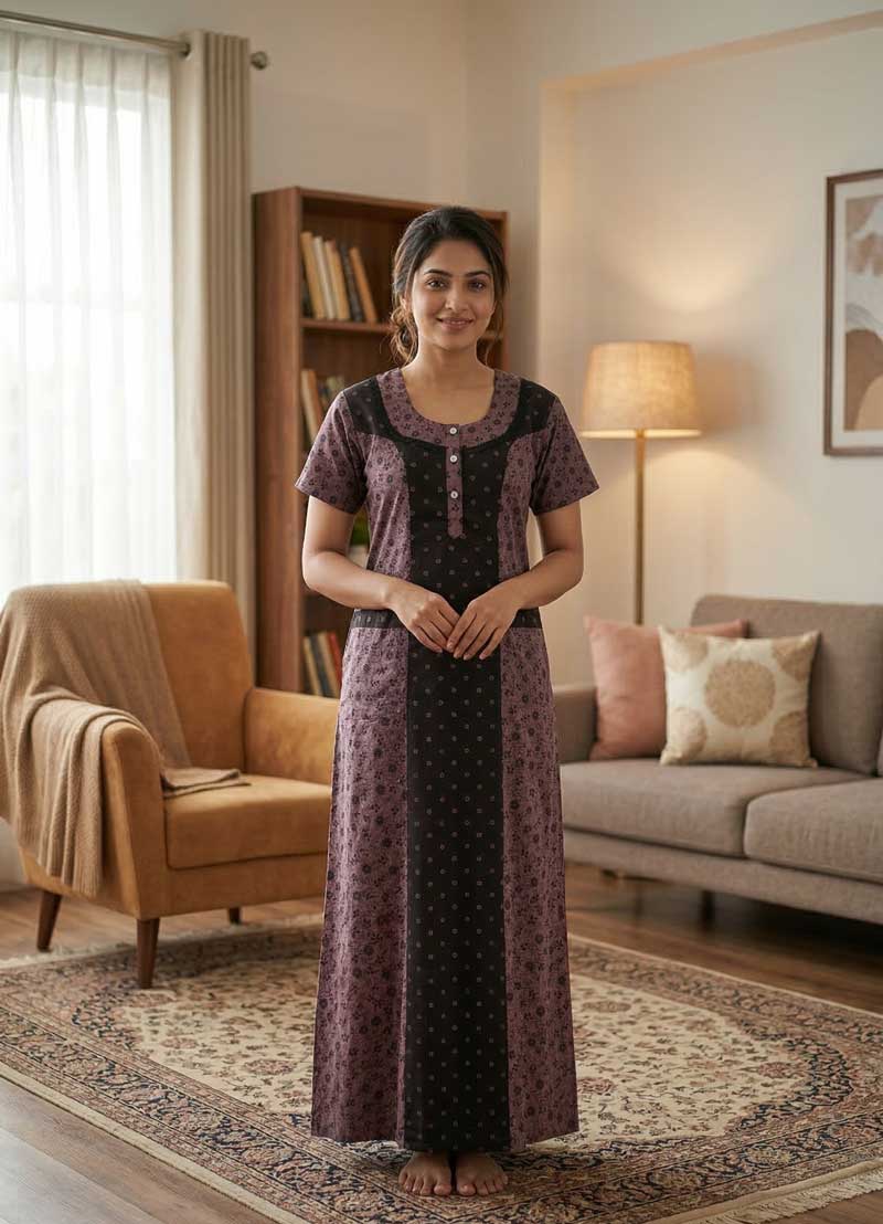 Comfortable Churidar Model Cotton Nighty, 55 Inches Long