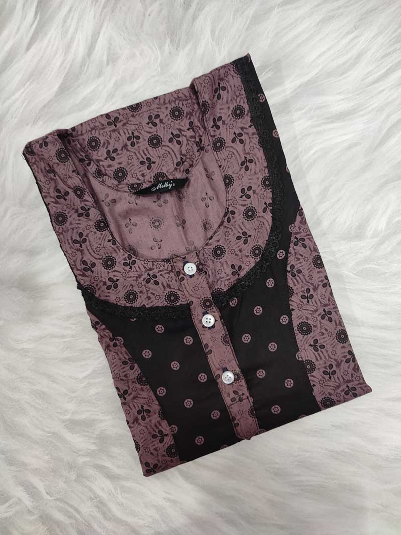 This nighty can be hand washed or a normal machine washed with cold water. Please make sure to dry the nighty in a light shade away from direct sunlight.