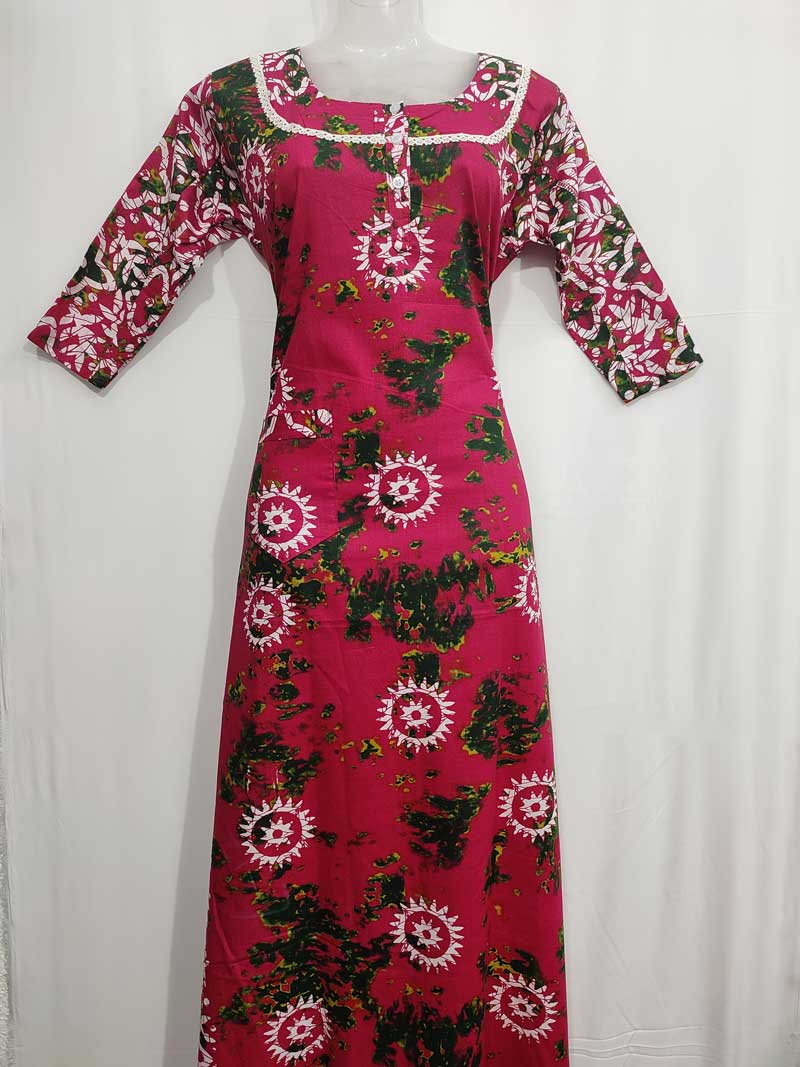 Comfortable Churidar Model Cotton Nighty, 55 Inches Long, 3/4th Sleeves – Magenta