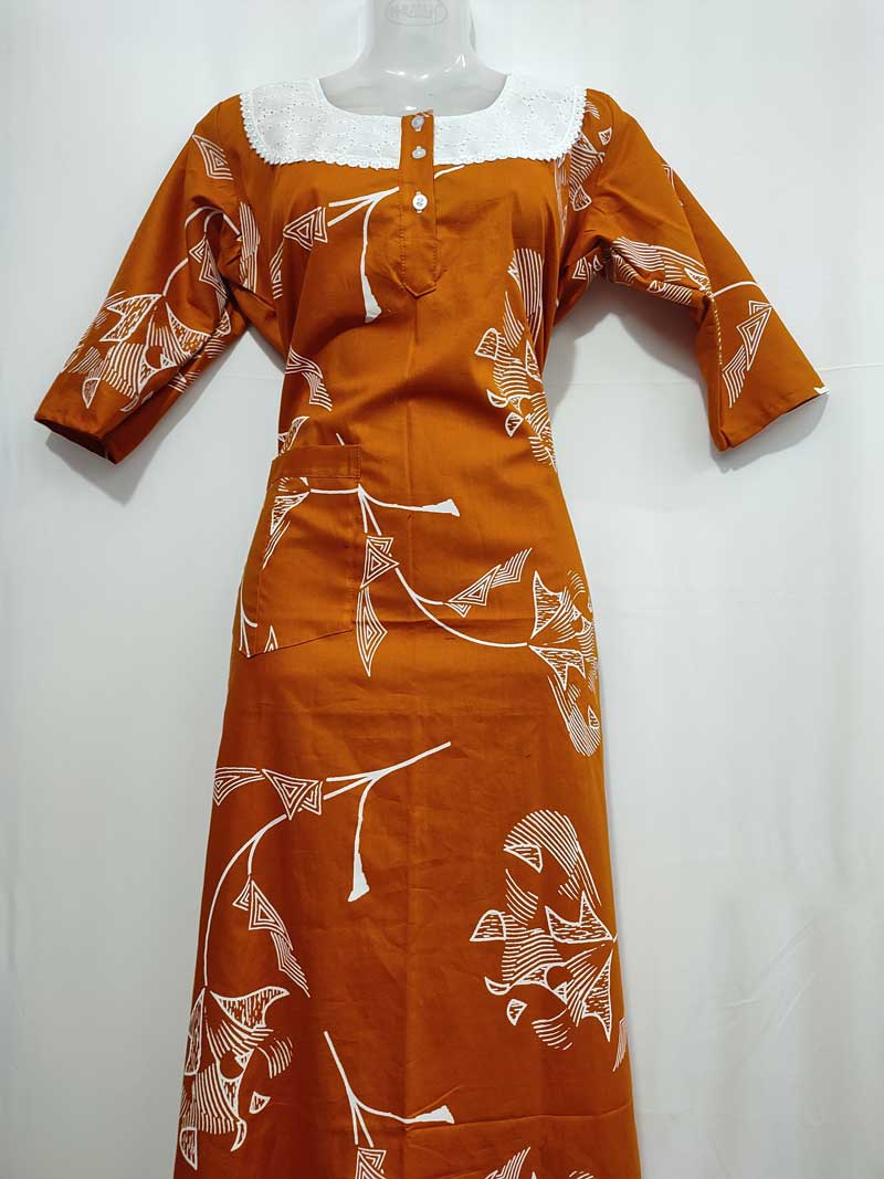 Comfortable Cambric Cotton Nighty With Buttons -55 Inches Long