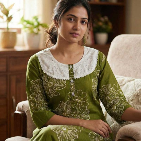 Comfortable Churidar Model Cotton Nighty, 55 Inches Long, 3/4th Sleeves – Green – M