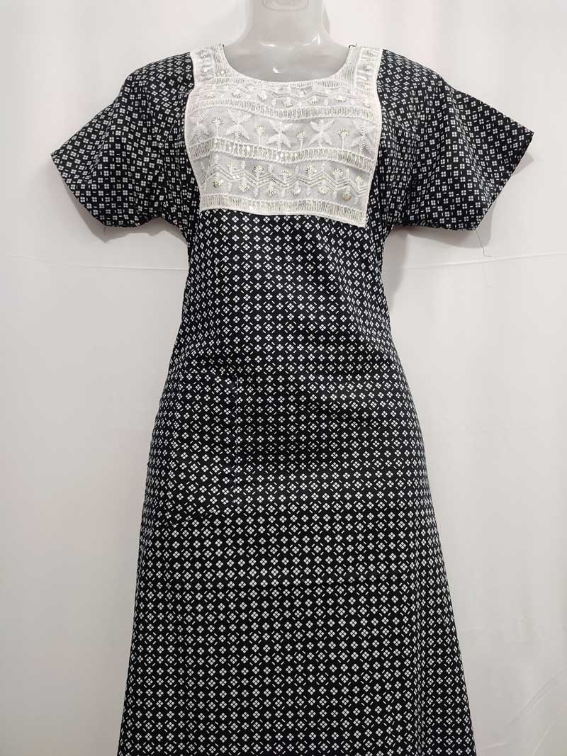 Comfortable Churidar Model Cotton Nighty, 55 Inches Long – Black