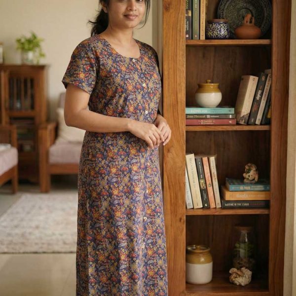 Comfortable Churidar Model Cotton Nighty – 55 Inches Long – Dark Blue