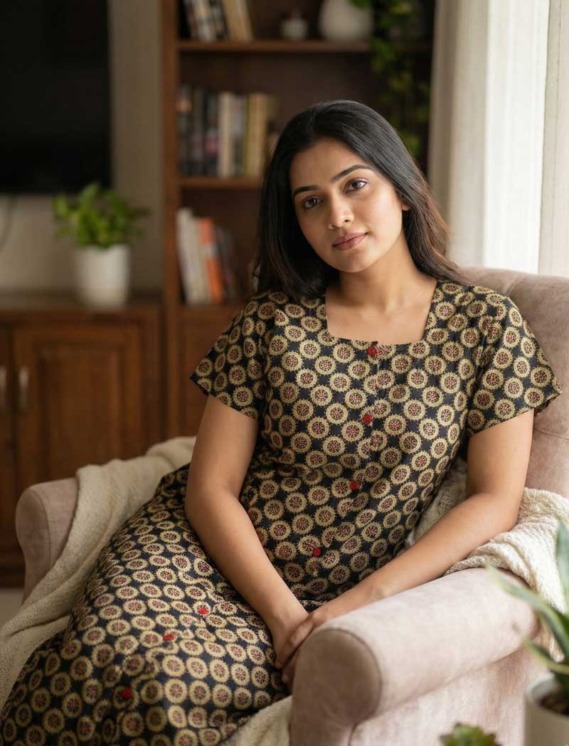 Comfortable Churidar Model Cotton Nighty – 55 Inches Long – Black + Olive Green