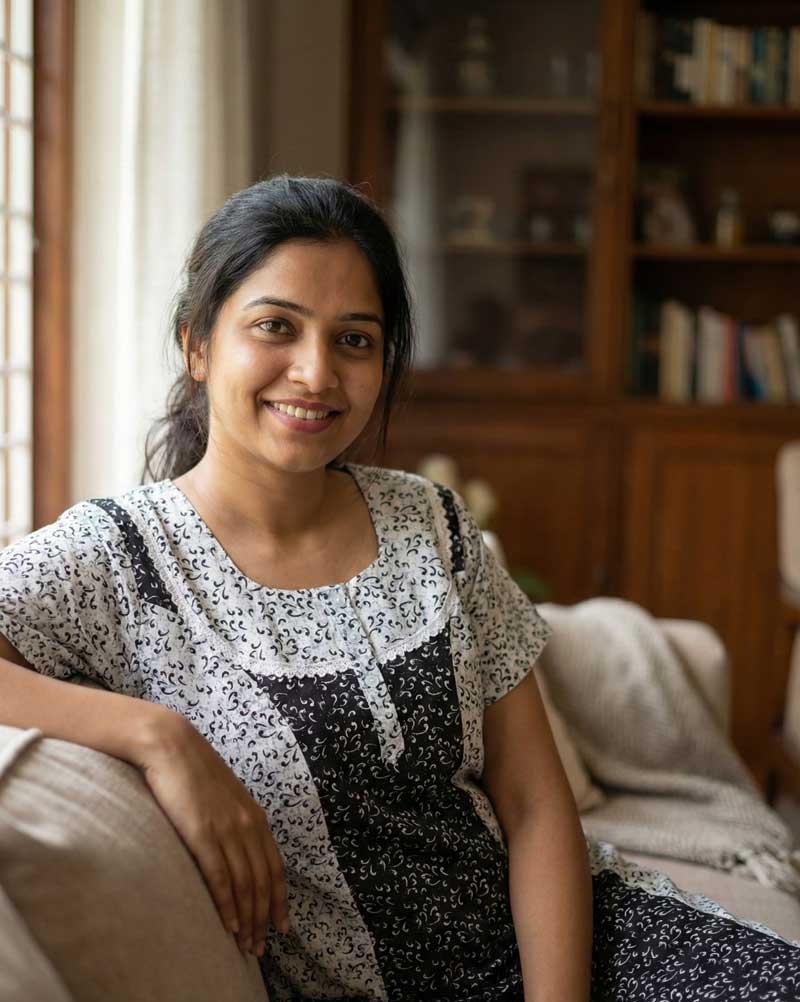 Premium Cambric Cotton Nighty With Long Sleeves – Buttons Type