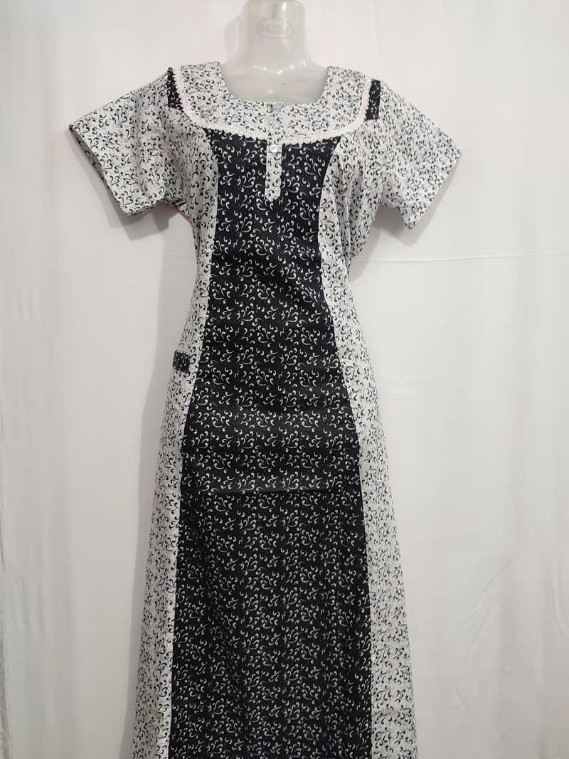Comfortable Churidar Model Cotton Nighty – 55 Inches Long – Black + White