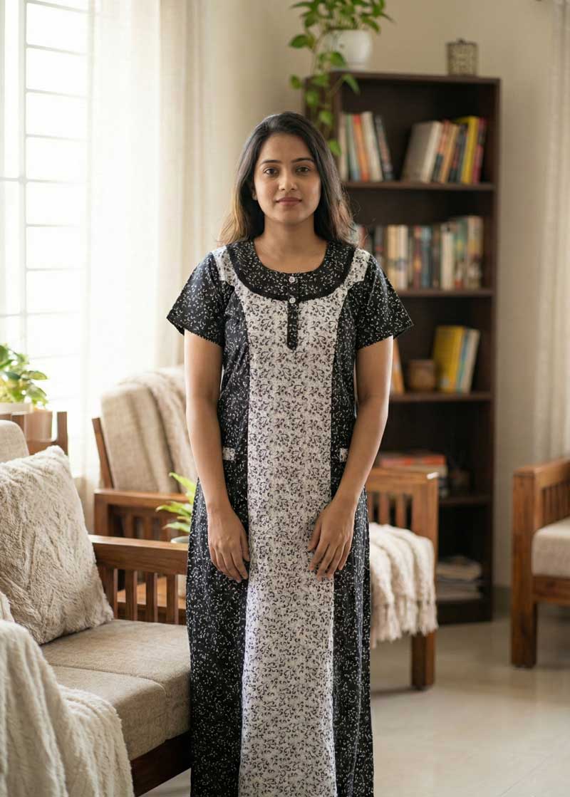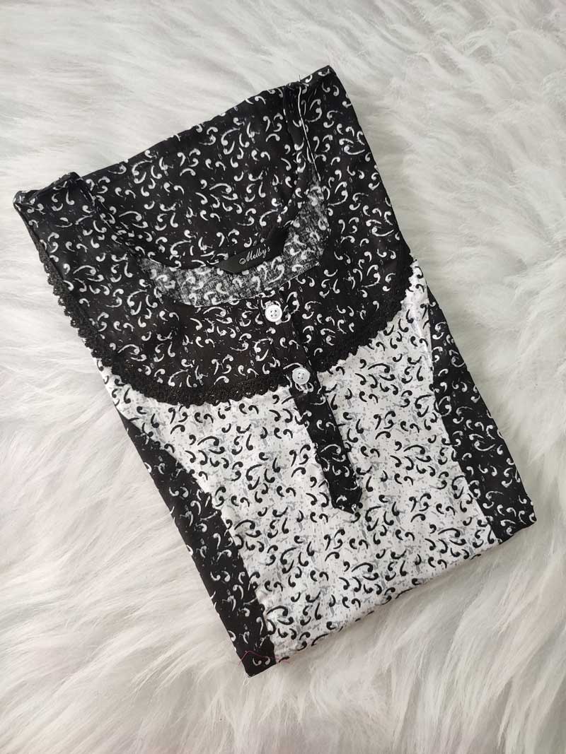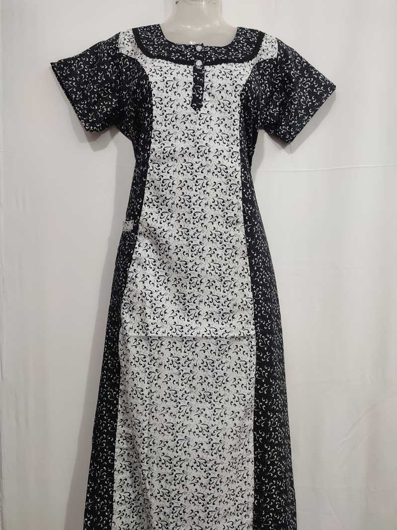 Comfortable Churidar Model Cotton Nighty – 55 Inches Long – Black + White