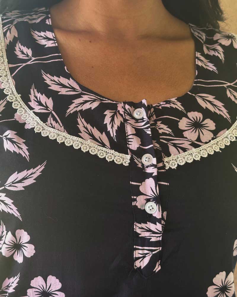 This nighty can be hand washed or a normal machine washed with cold water. Please make sure to dry the nighty in a light shade away from direct sunlight.