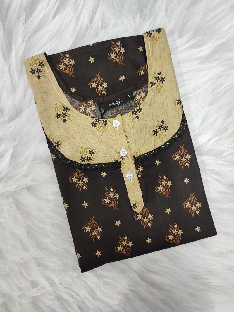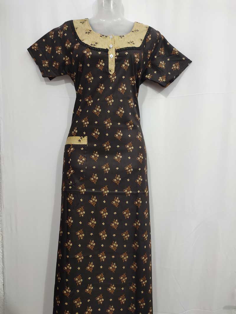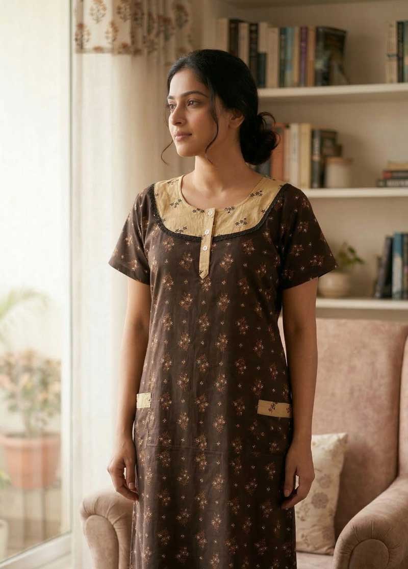 Comfortable Churidar Model Cotton Nighty, 55 Inches Long- Brown