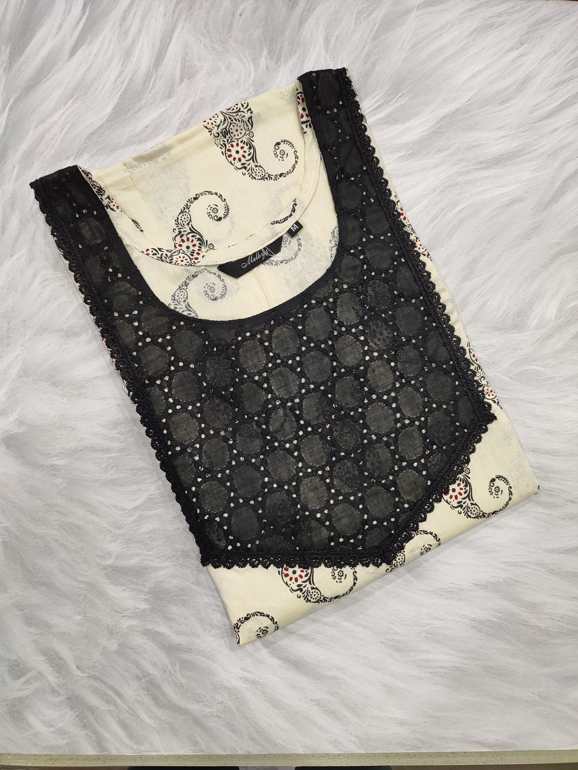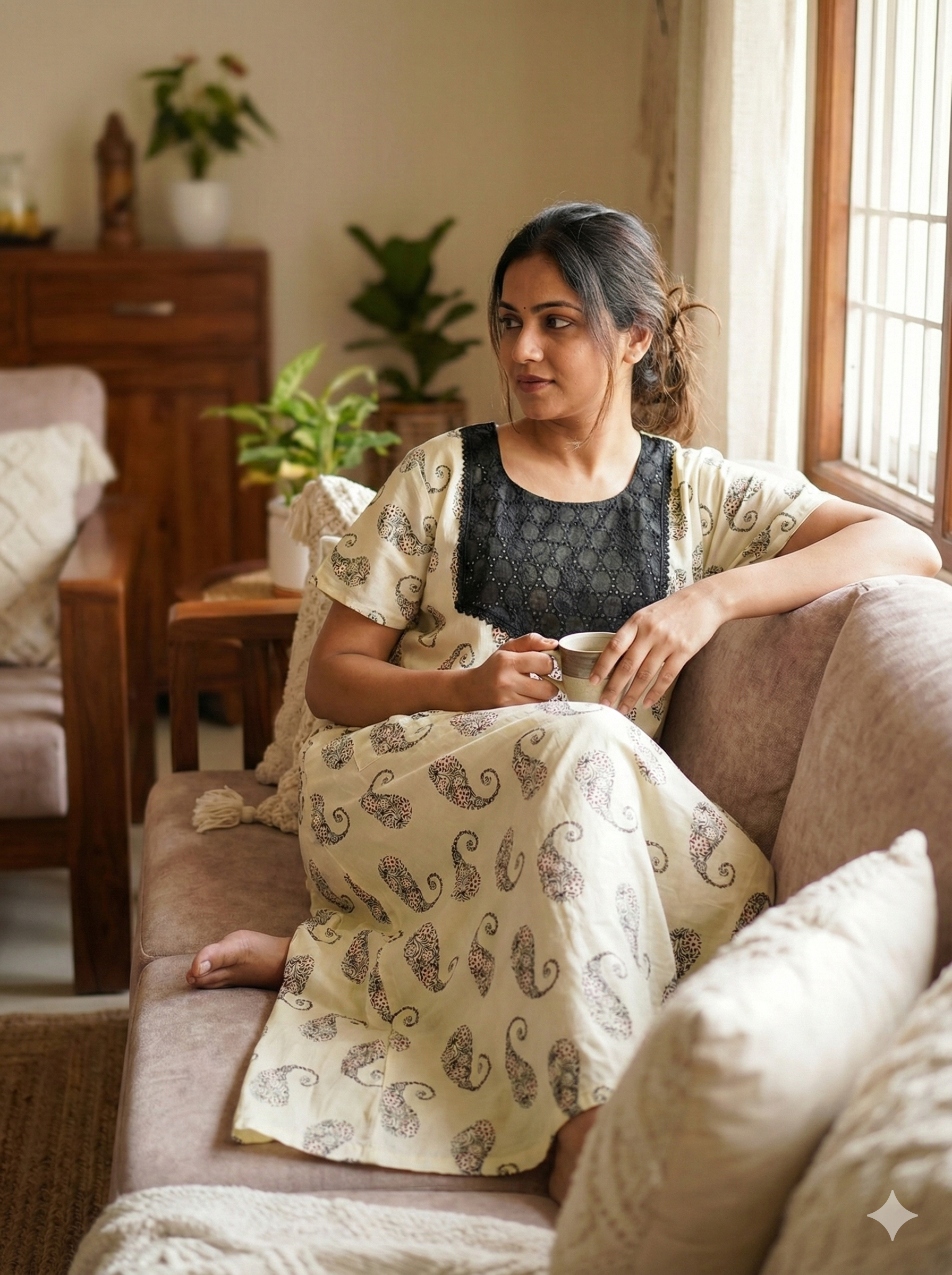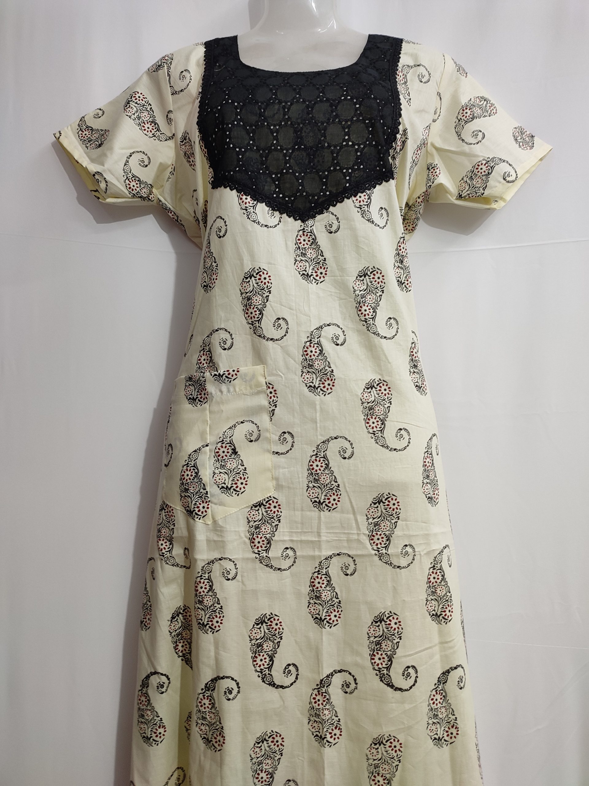 Comfortable Churidar Model Cotton Nighty – 55 Inches Long – Cream
