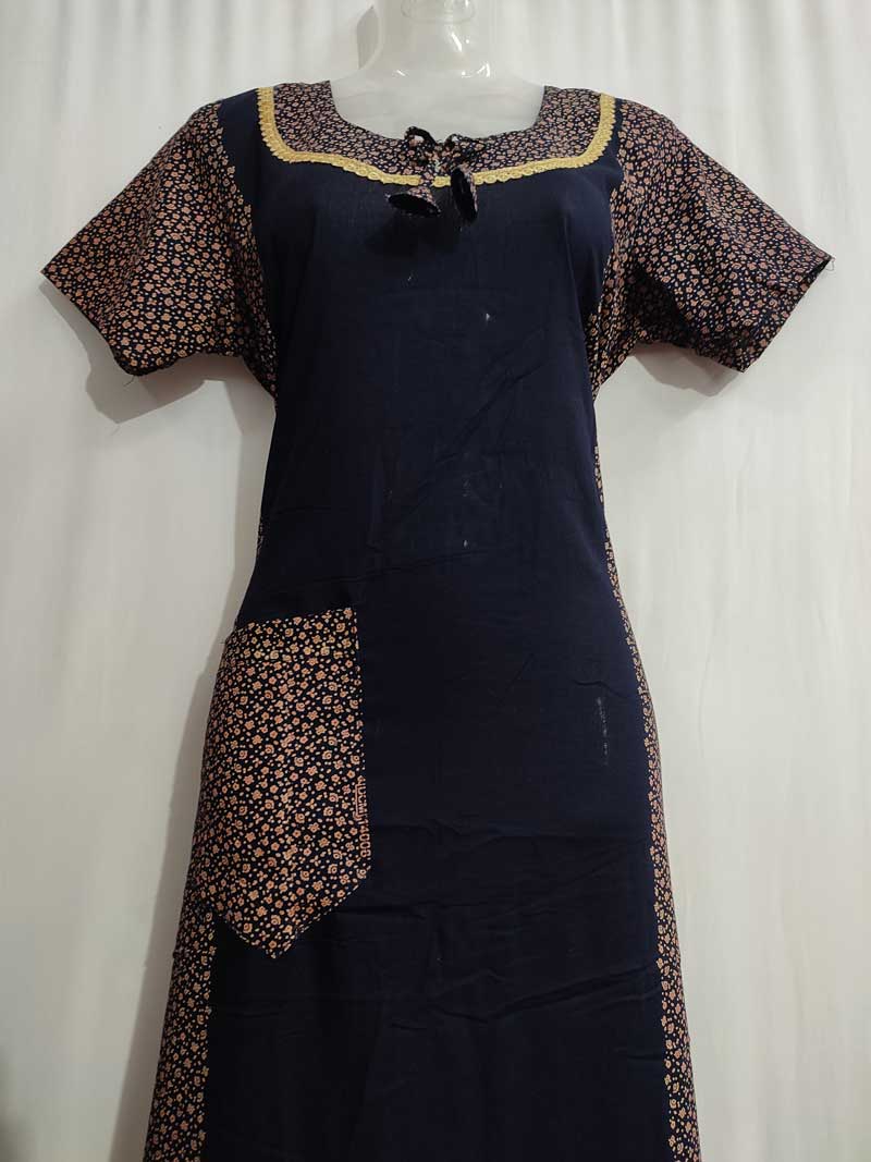 Comfortable Churidar Model Cotton Nighty – 55 Inches Long – Dark Blue