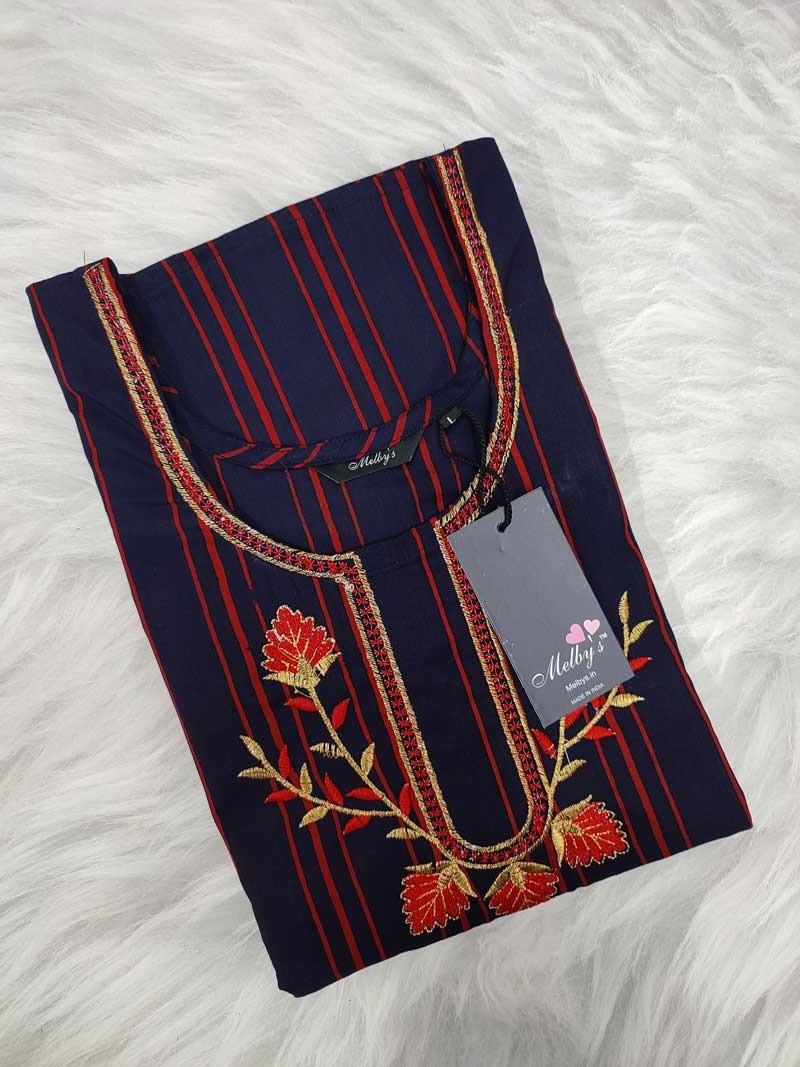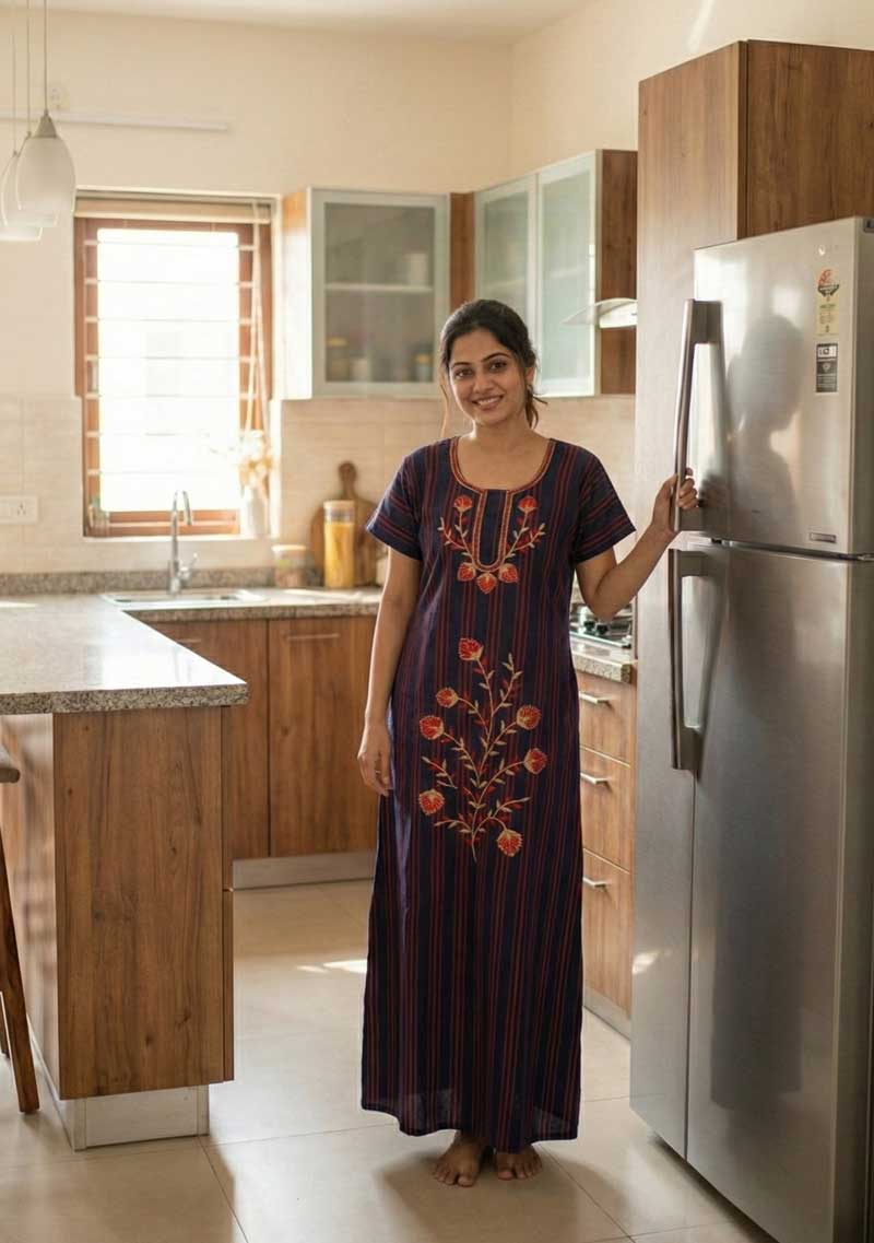 Comfortable Churidar Model Cotton Nighty -55 Inches Long – Dark Blue Embroidery
