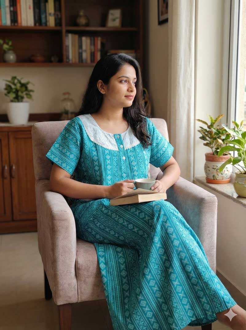 This nighty can be hand washed or a normal machine washed with cold water. Please make sure to dry the nighty in a light shade away from direct sunlight.
