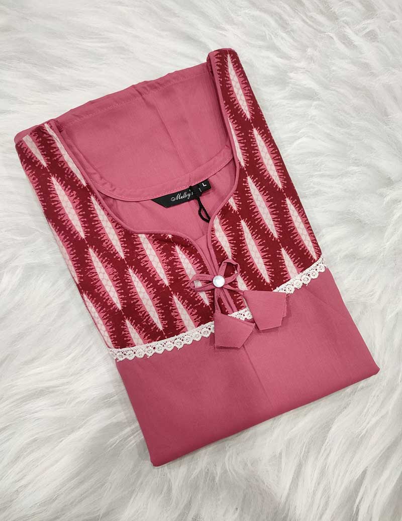 Comfortable Cotton Nighty With Buttons, 57 Inches Long – Rose