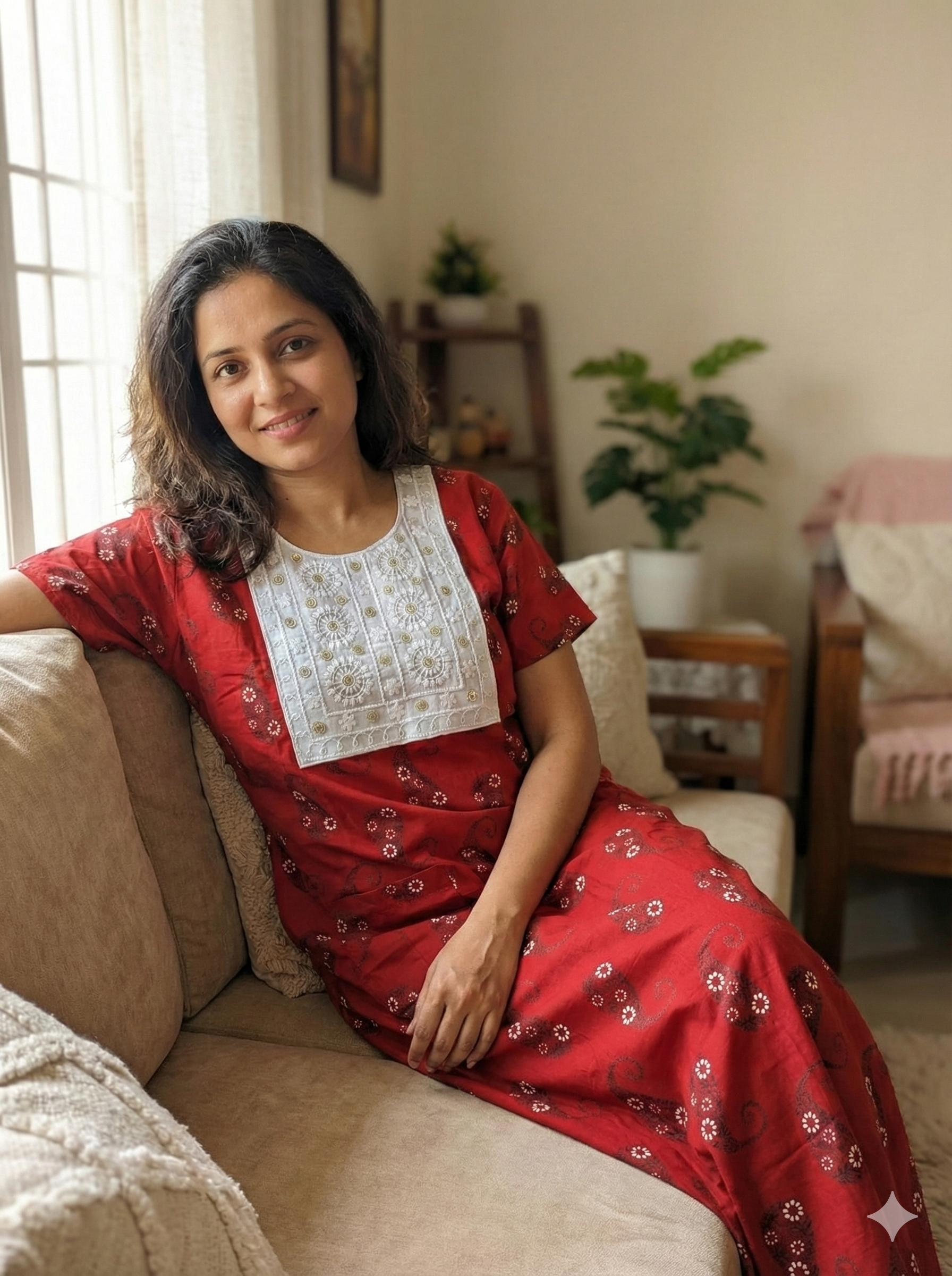 Comfortable Churidar Model Cotton Nighty – 55 Inches Long – Red