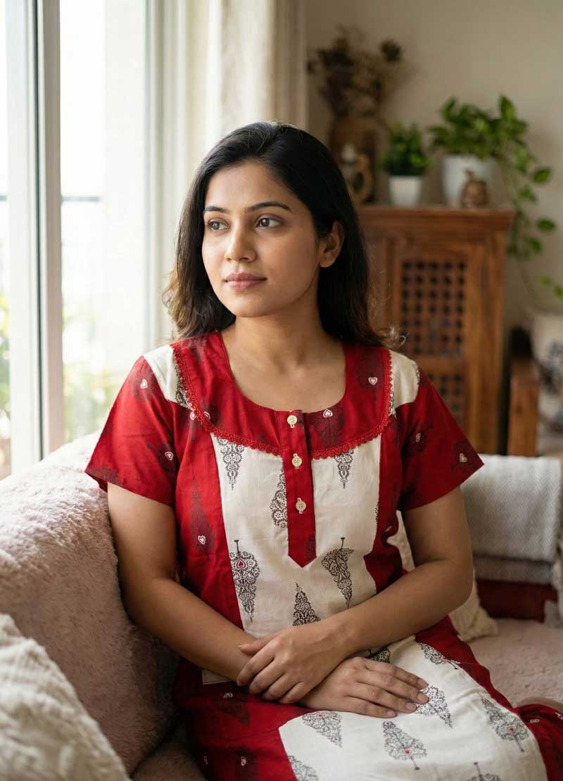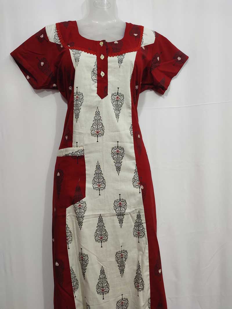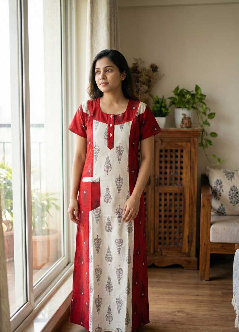 Comfortable Churidar Model Cotton Nighty – 55 Inches Long – Red
