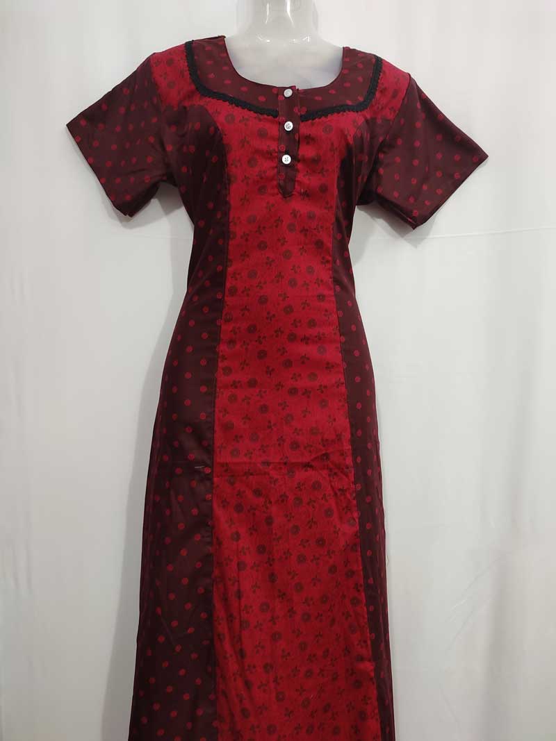 Comfortable cotton nighty With Buttons -55 inches long- Red