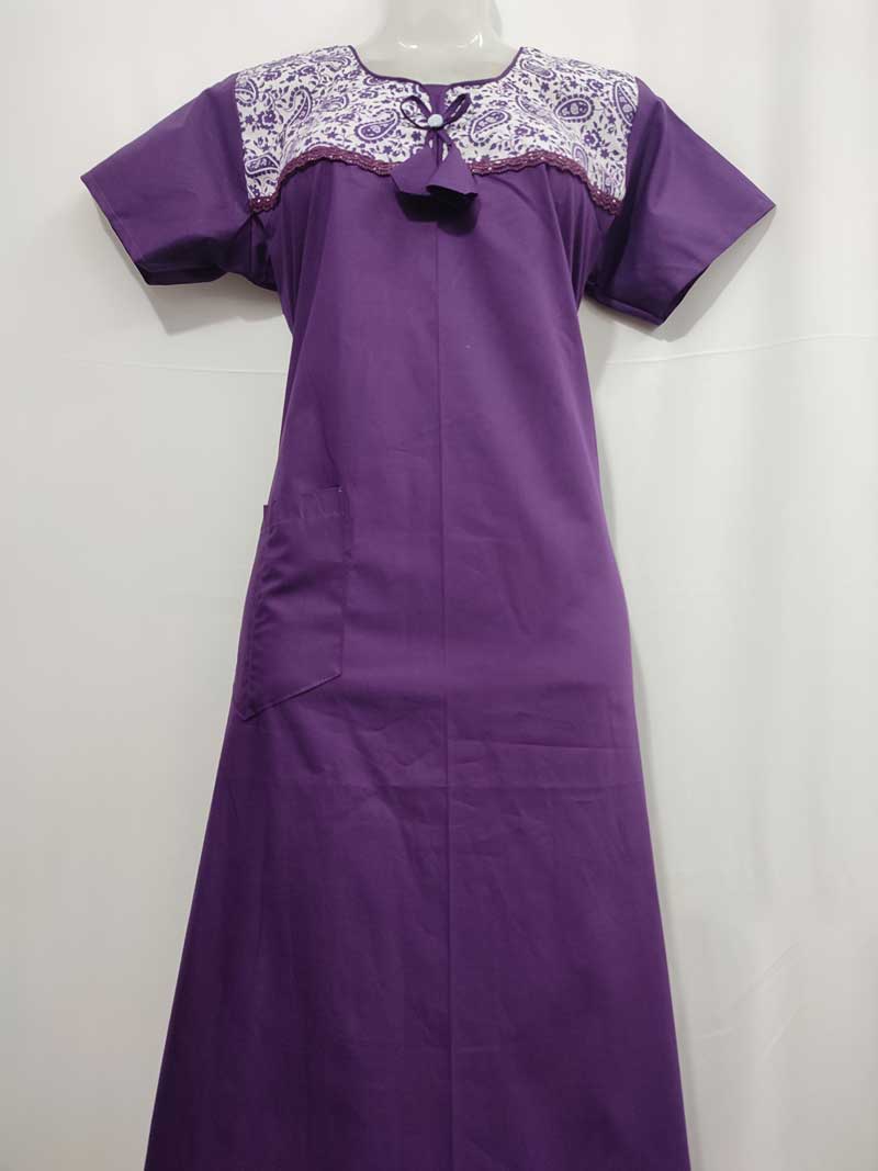 Comfortable Churidar Model Cotton Nighty, 55 Inches Long – Violet