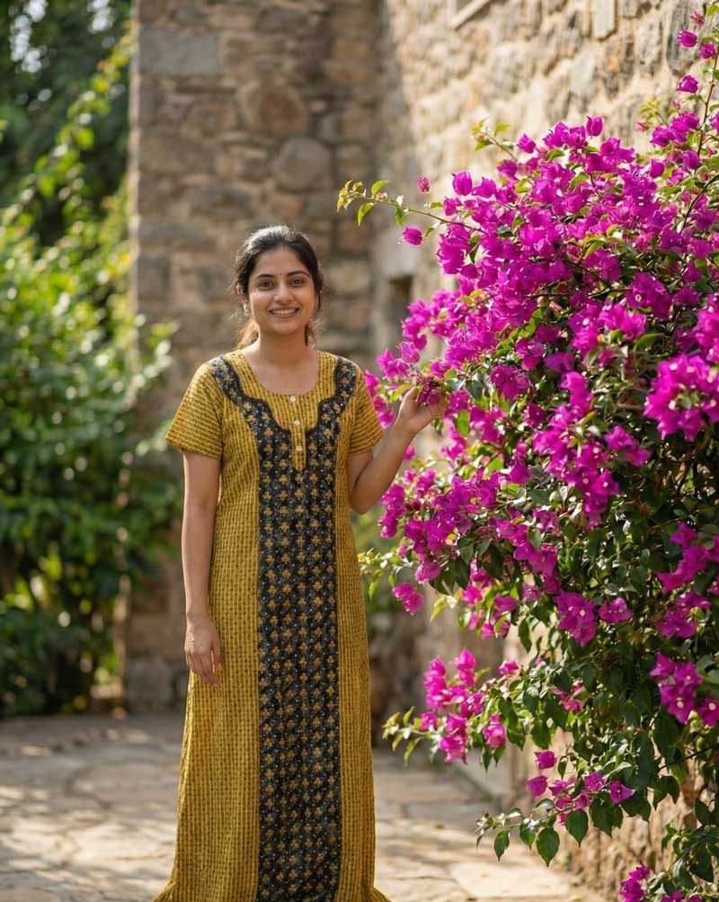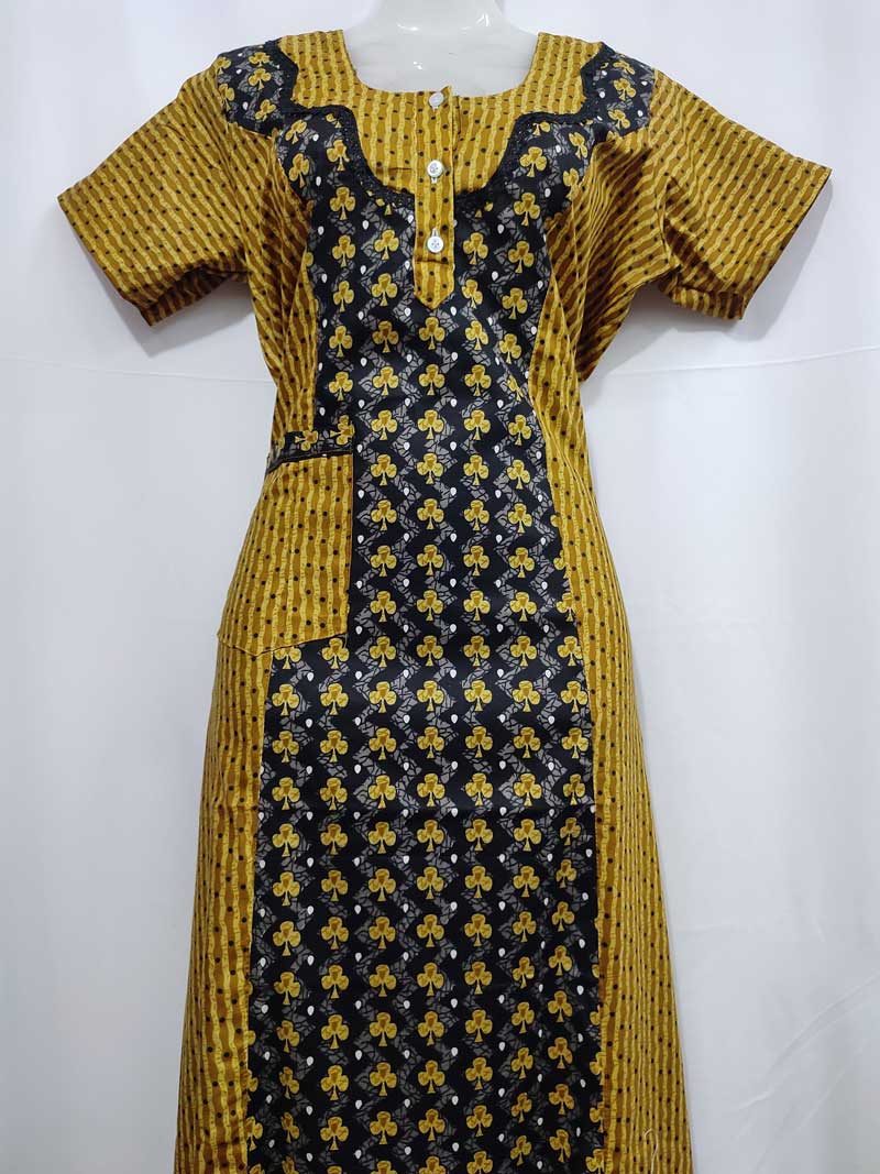 Comfortable Churidar Model Cotton Nighty – 55 Inches Long – Yellow