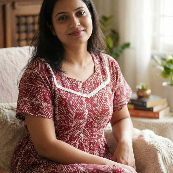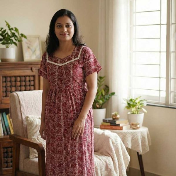 Comfortable Frock Model Cotton Nighty – 55 Inches Long – Maroon