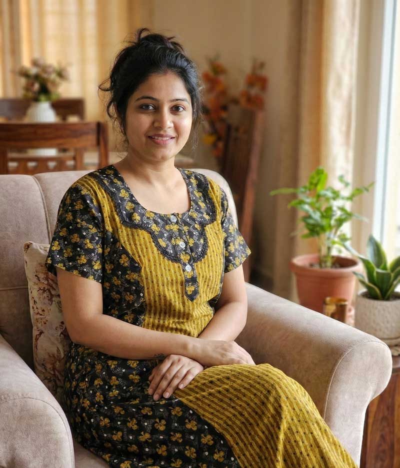 This nighty can be hand washed or a normal machine washed with cold water. Please make sure to dry the nighty in a light shade away from direct sunlight.