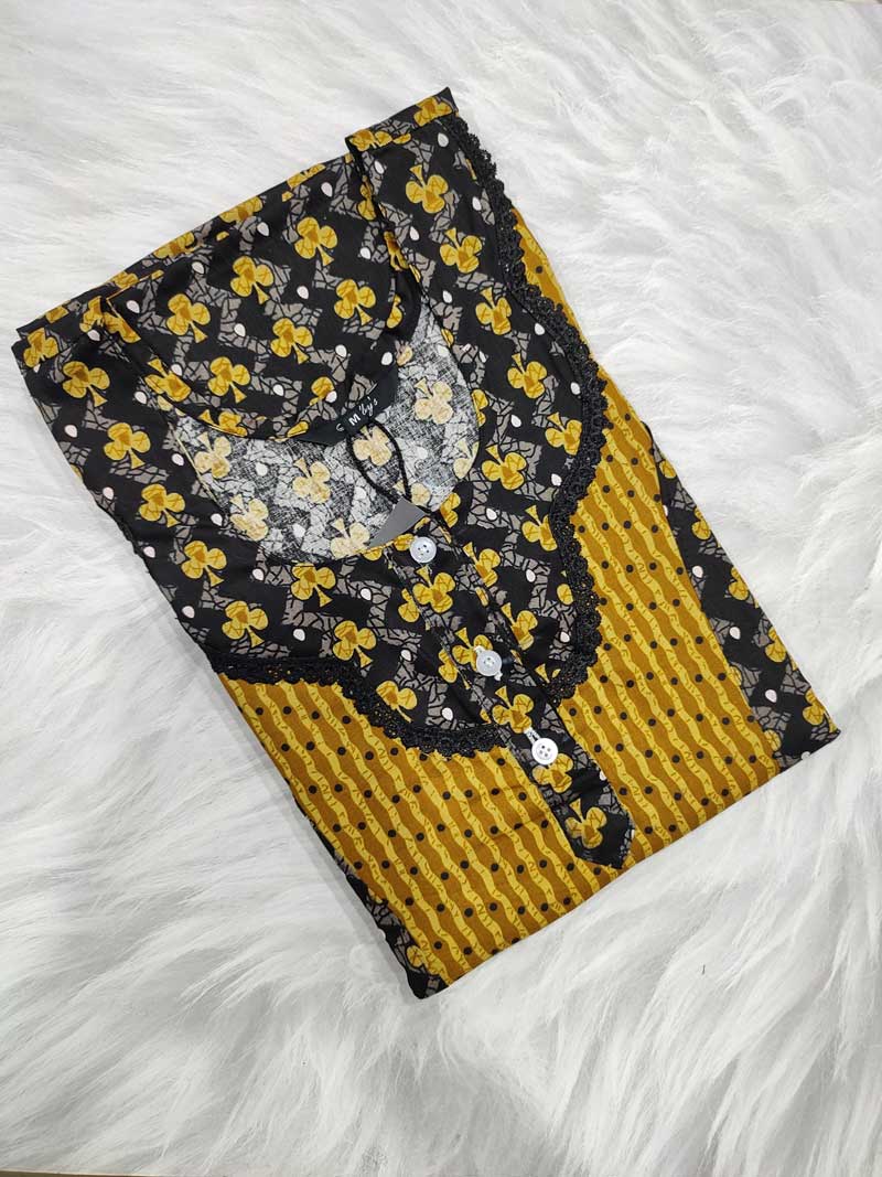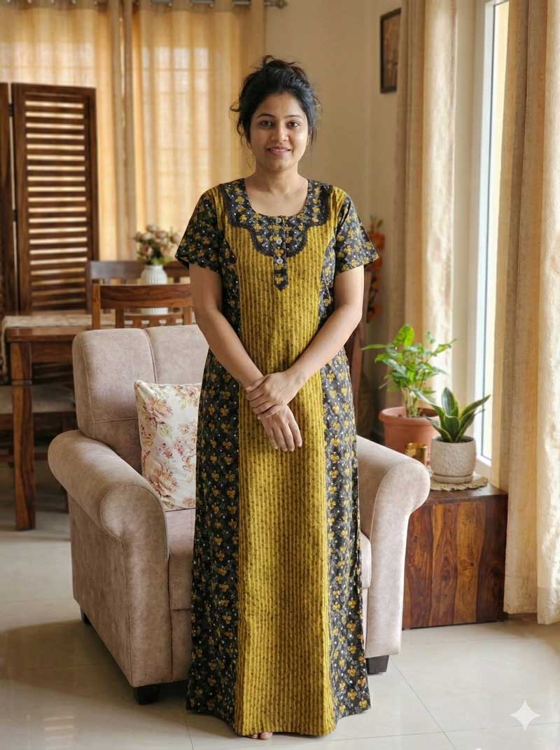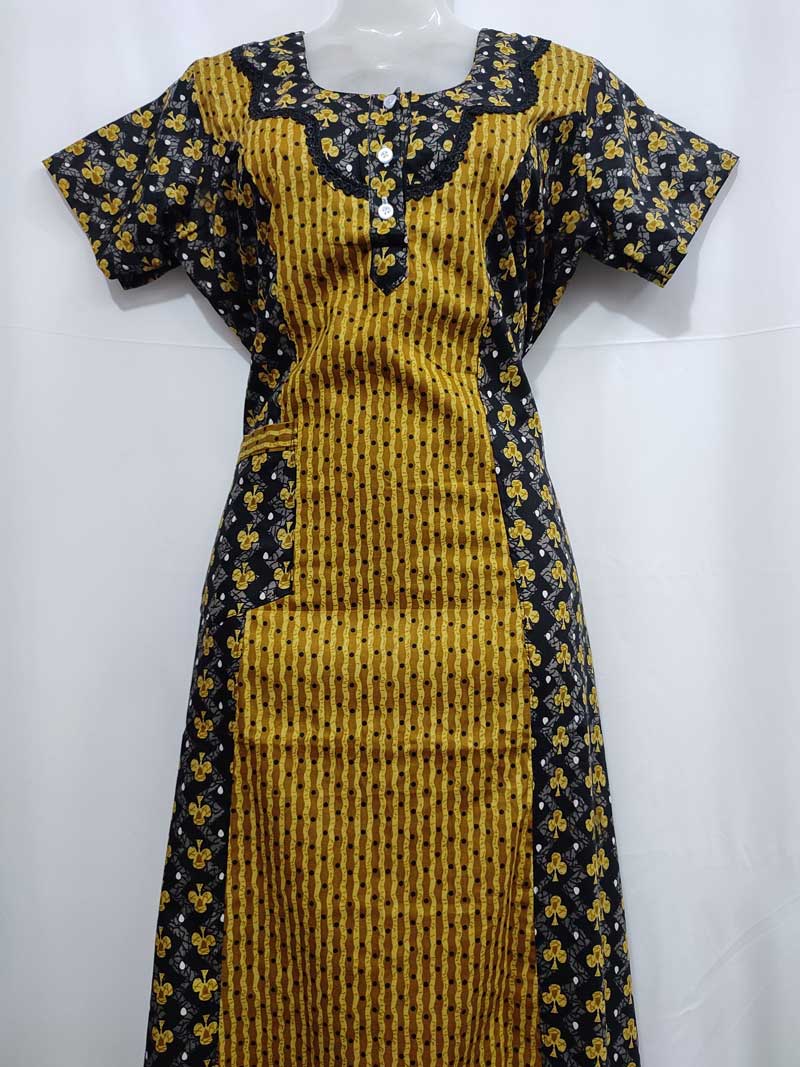 Comfortable Churidar Model Cotton Nighty – 55 Inches Long – Yellow