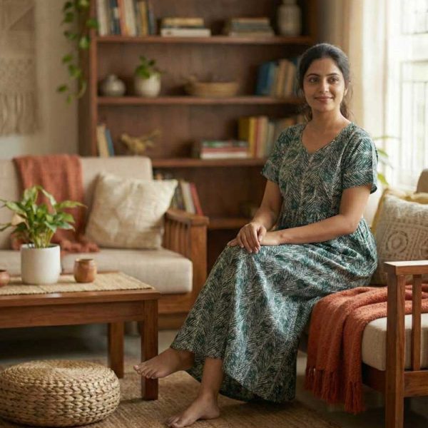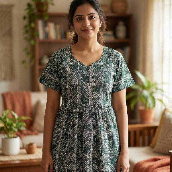 Comfortable Frock Model Cotton Nighty – 55 Inches Long – Dark Green