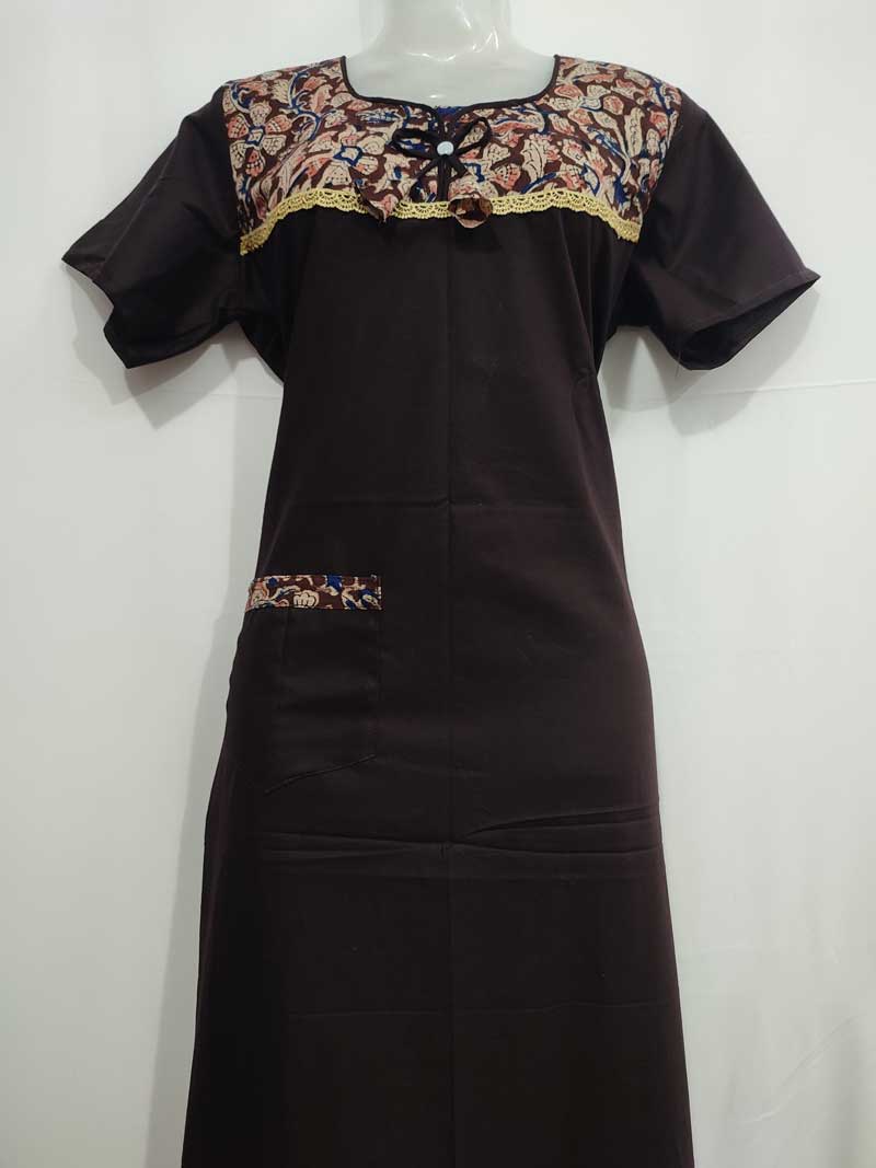 Traditional Cotton Nighty , 55 Inches Long – Brown