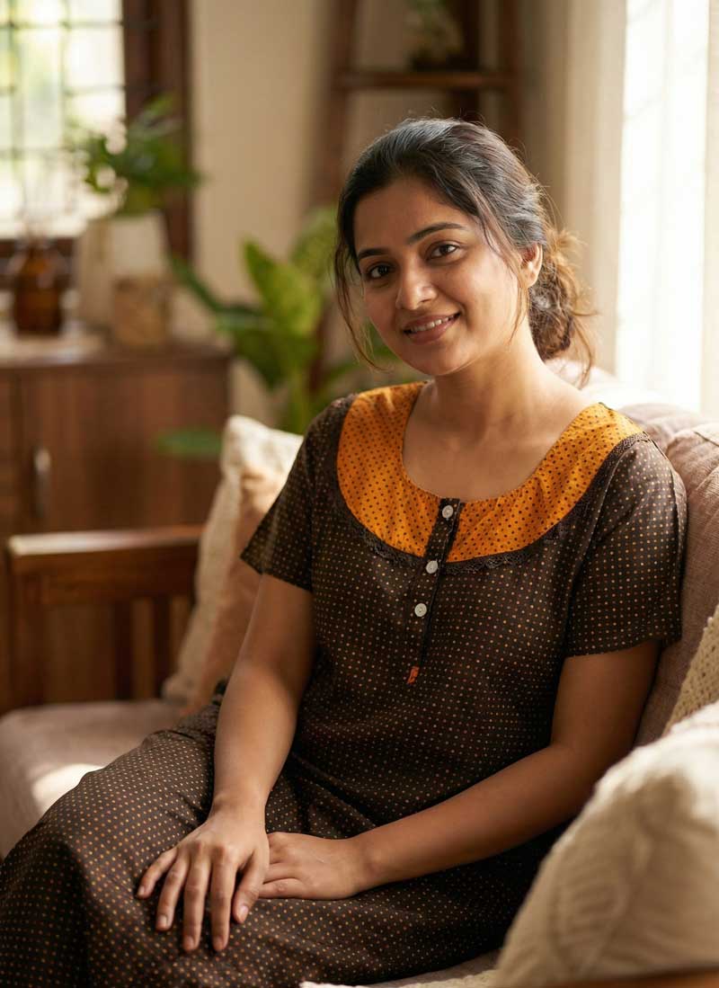 This nighty can be hand washed or a normal machine washed with cold water. Please make sure to dry the nighty in a light shade away from direct sunlight.