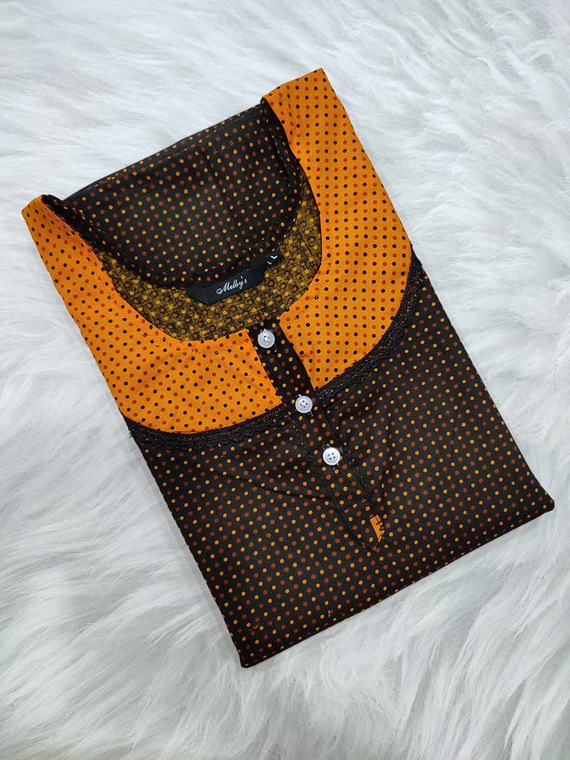 Comfortable Churidar Model Cotton Nighty with Buttons – 55 Inches Long – Yellow