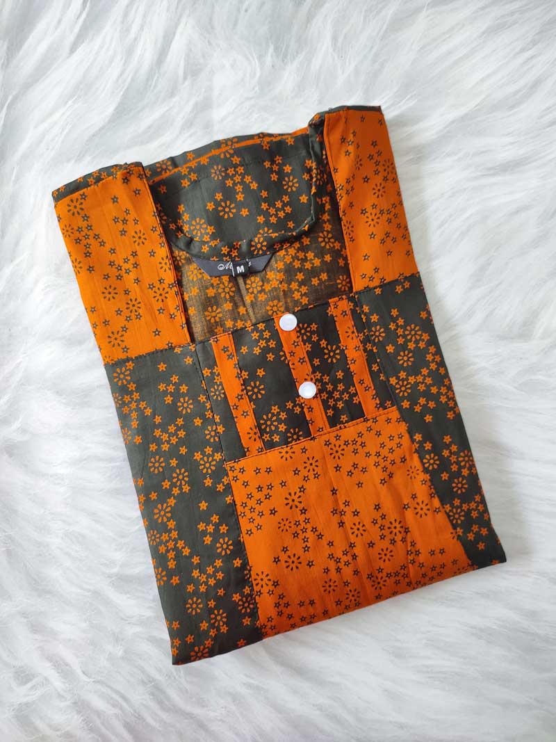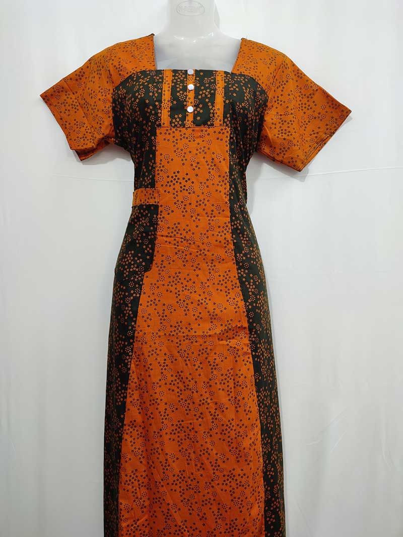 Comfortable Churidar Model Cotton Nighty with Buttons – 55 Inches Long – Black + Orange