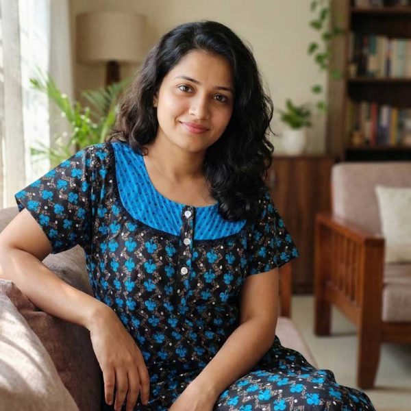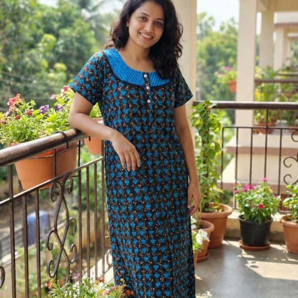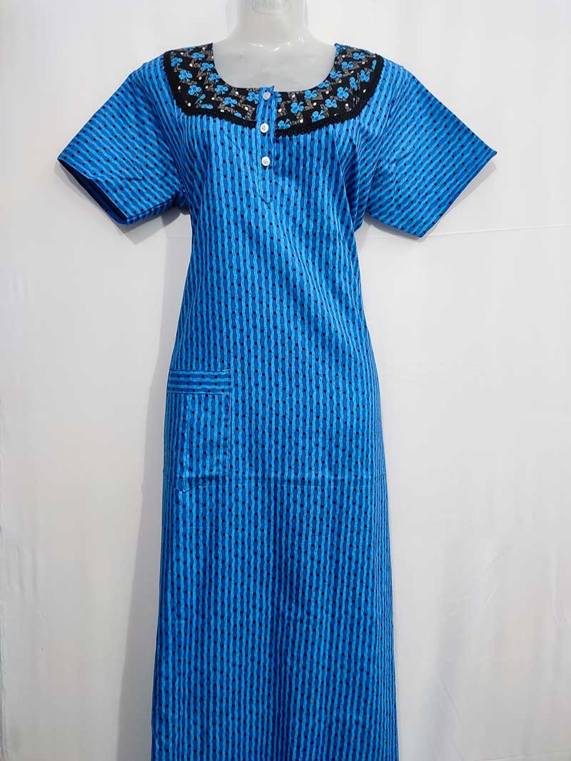 Comfortable Churidar Model Cotton Nighty with Buttons – 55 Inches Long – Blue