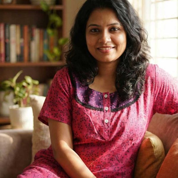 Comfortable Churidar Model Cotton Nighty with Buttons – 55 Inches Long – Rose