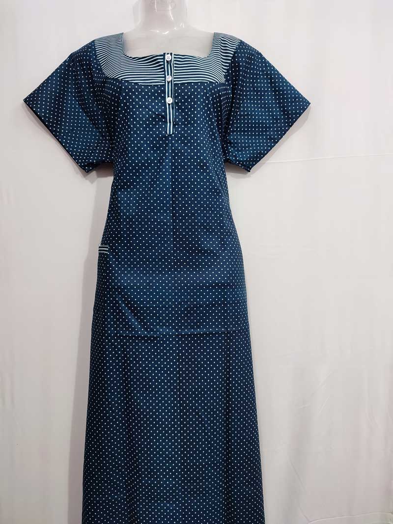 Comfortable Churidar Model Cotton Nighty with Buttons – 57 Inches Long – Blue