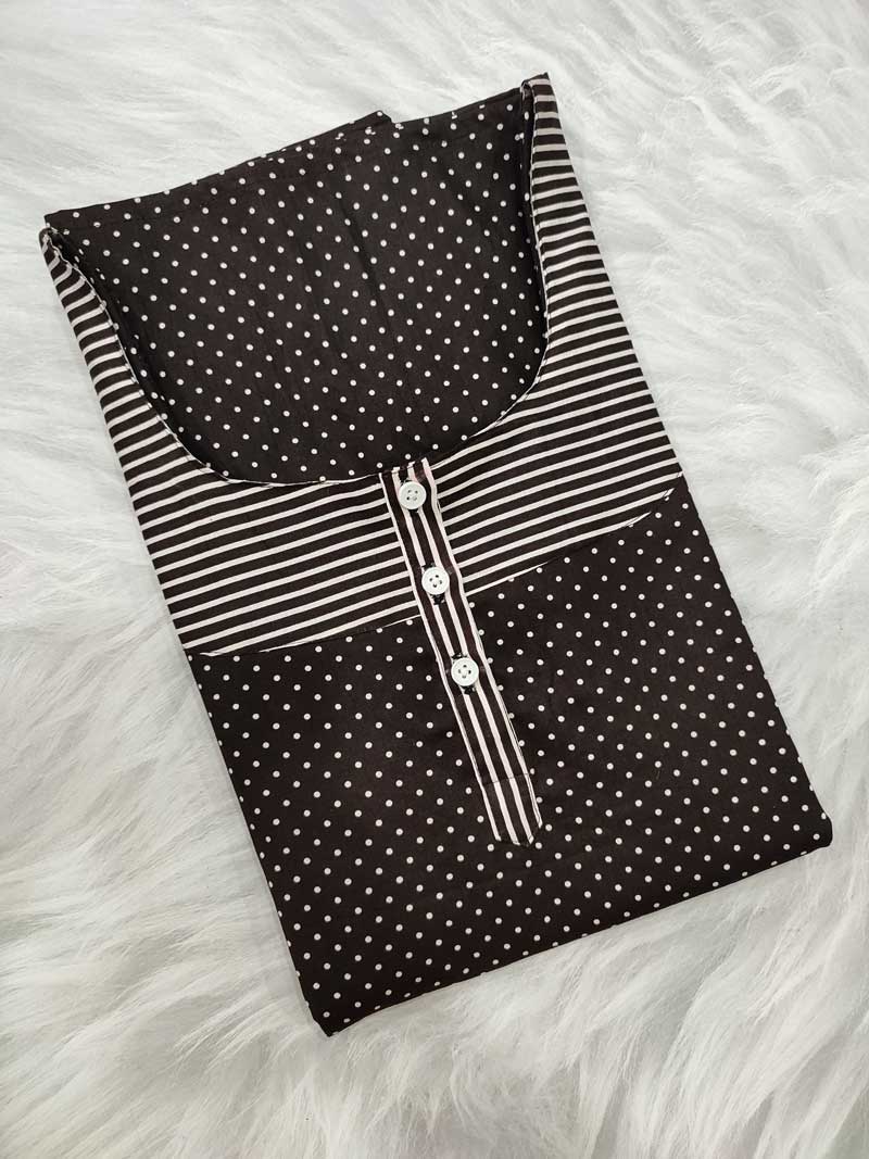 Comfortable Churidar Model Cotton Nighty with Buttons – 57 Inches Long – Brown + White lines