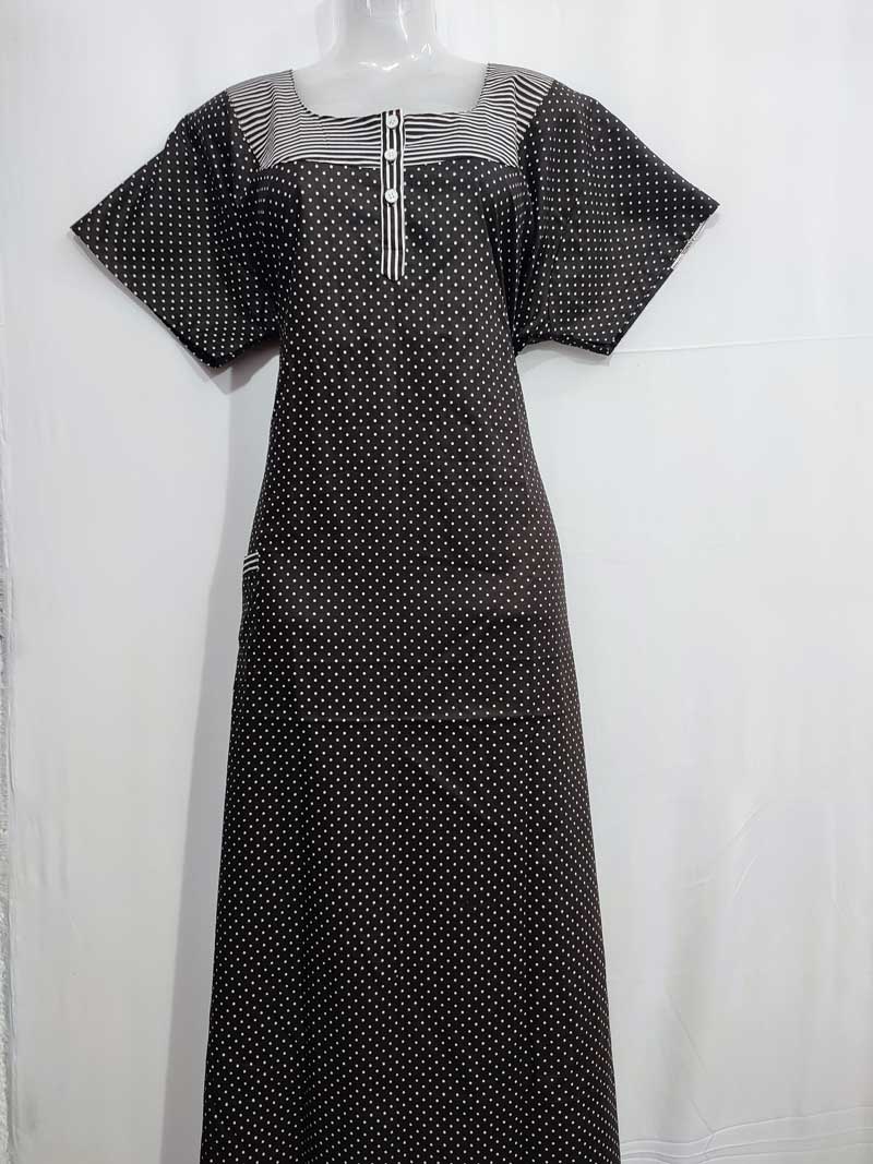 Comfortable Cambric Cotton Nighty With Buttons -55 Inches Long