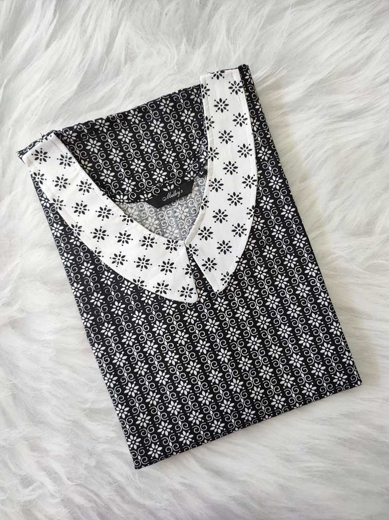Comfortable Churidar Model Cotton Nighty with Peter-Pan Collar – 55 Inches Long – Black