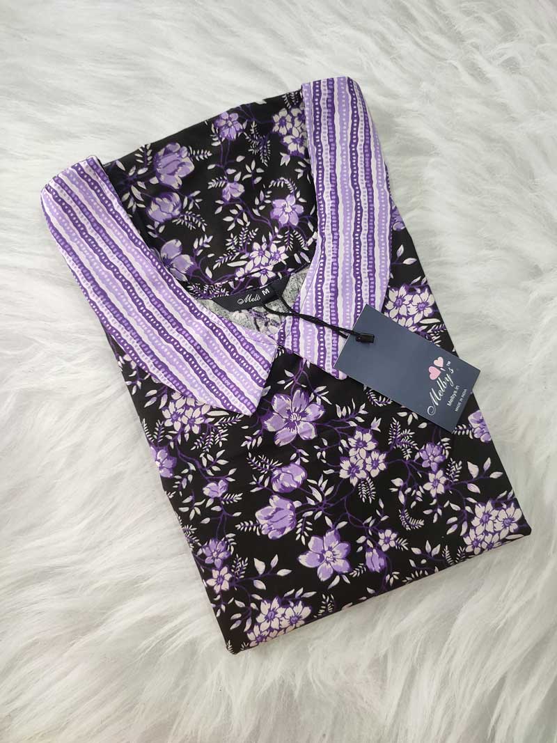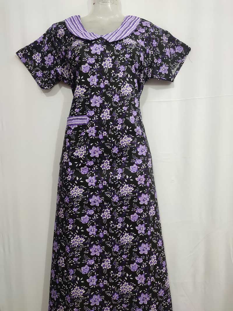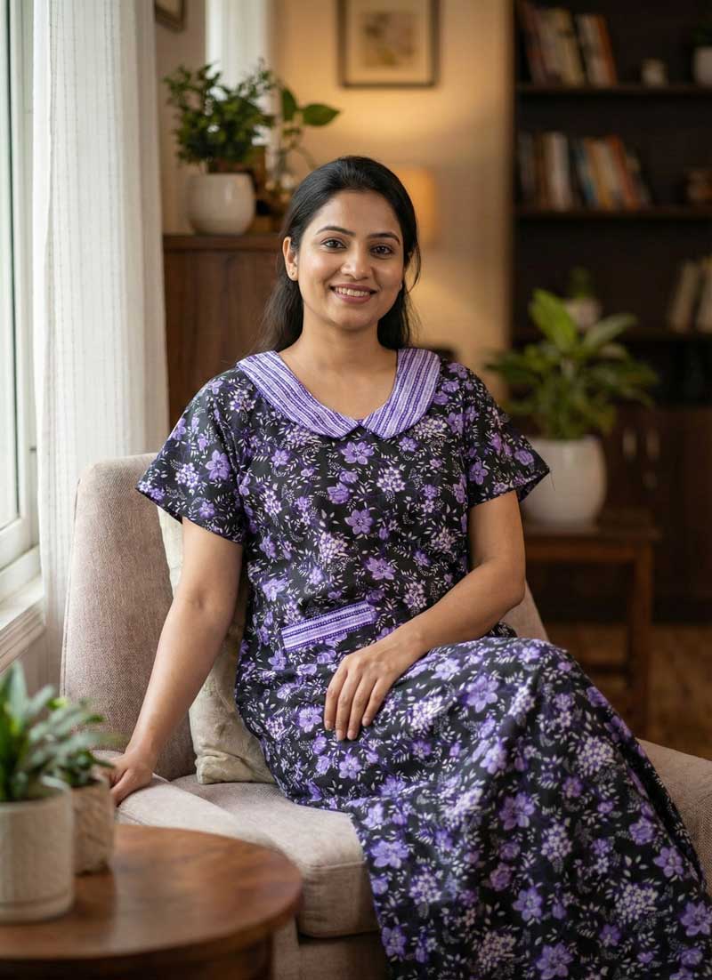 Comfortable Churidar Model Cotton Nighty With Peter Pan Collar- 55 Inches Long – Black