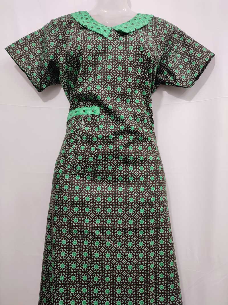Comfortable Churidar Model Cotton Nighty with Peter-Pan Collar – 55 Inches Long – Black + Green