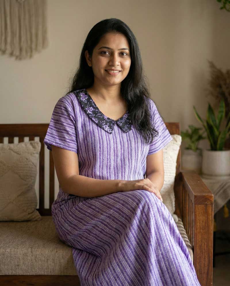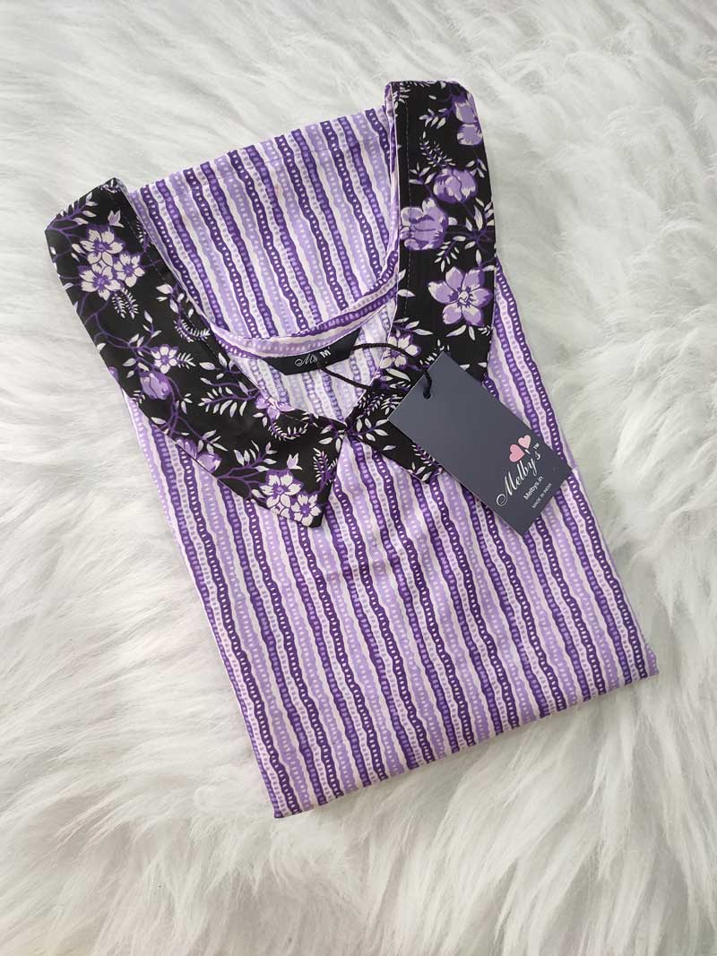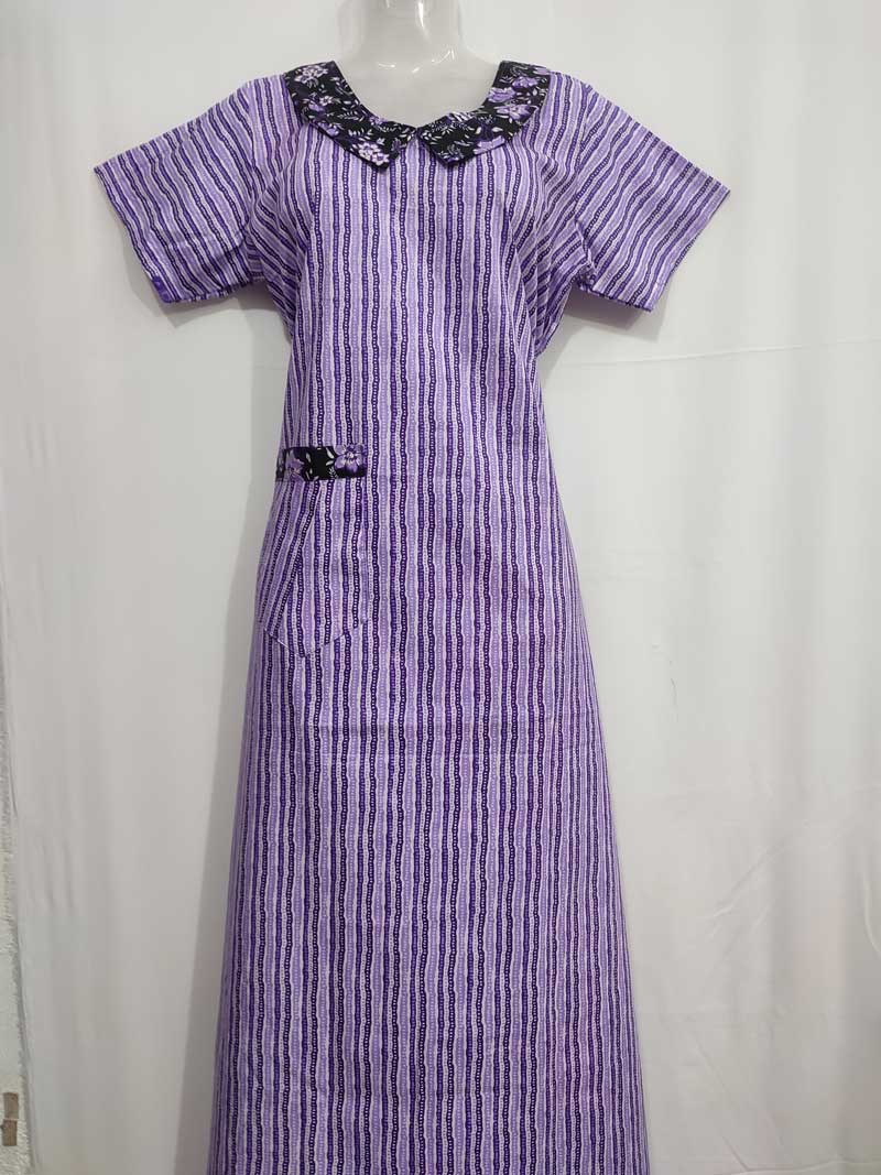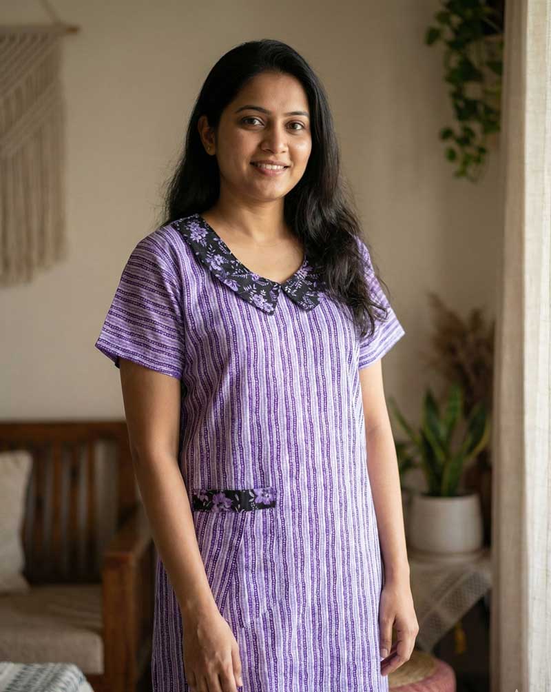 Comfortable Churidar Model Cotton Nighty With Peter Pan Collar- 55 Inches Long – Violet