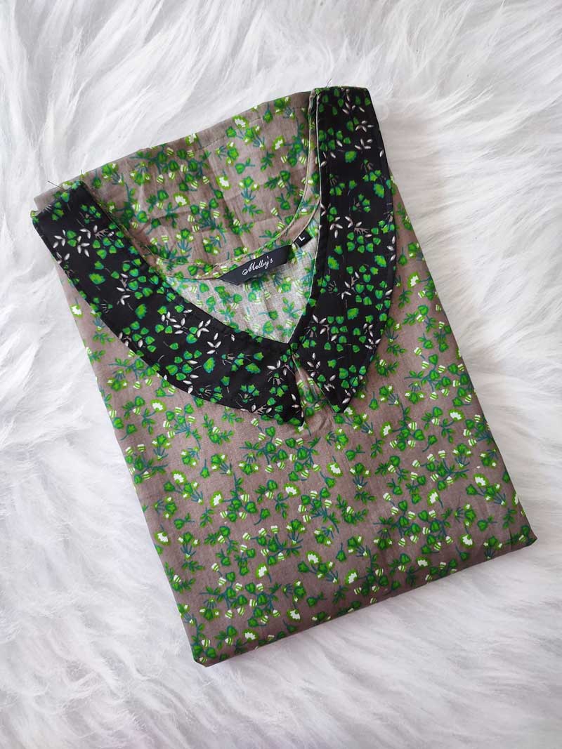 Comfortable Churidar Model Cotton Nighty with Peter-Pan Collar – 55 Inches Long – Black + Green