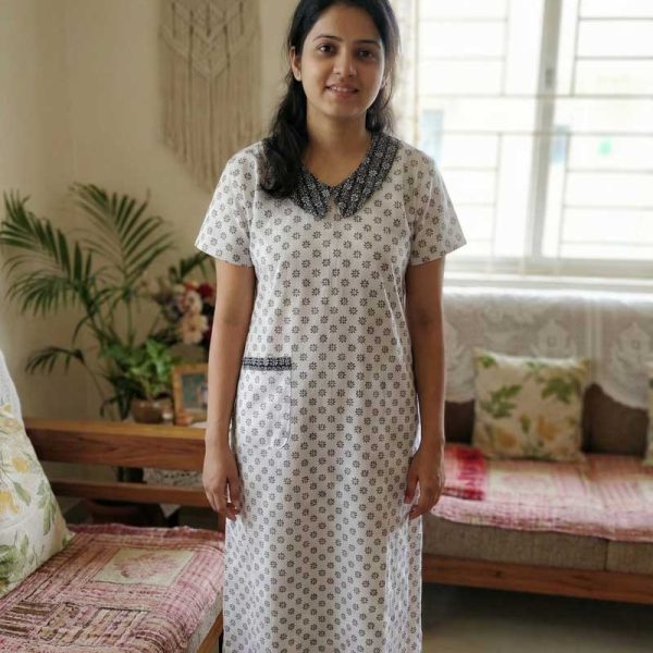 Comfortable Churidar Model Cotton Nighty with Peter-Pan Collar – 55 Inches Long