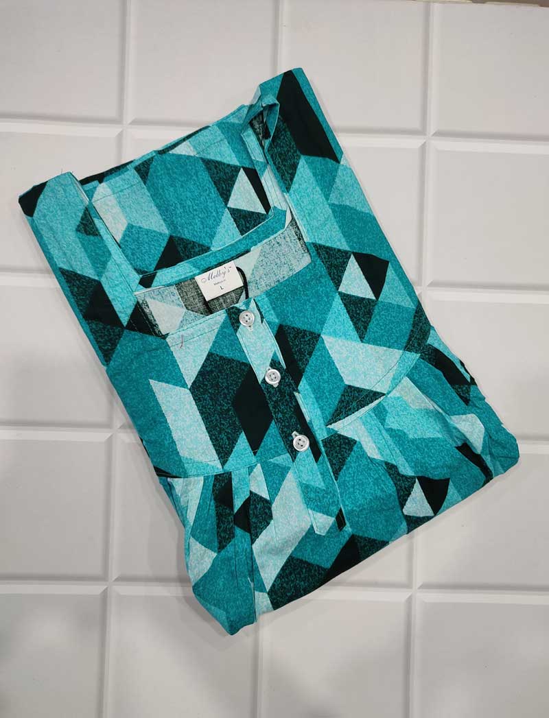 Comfortable cotton nighty With Buttons -55 inches long- Green