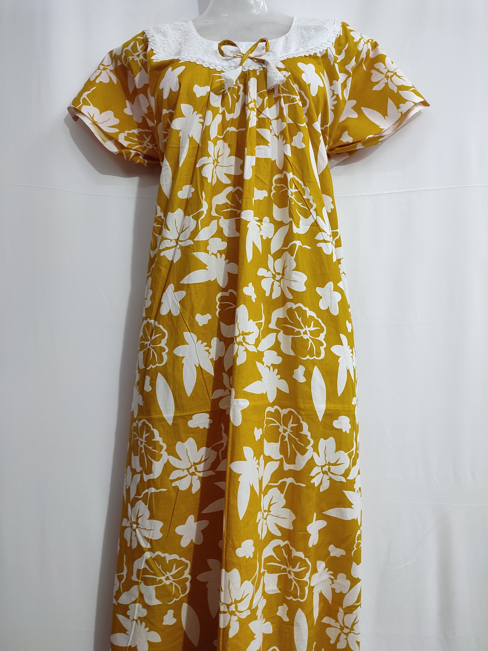 Comfortable cotton nighty with round neck -55 inches long – Yellow