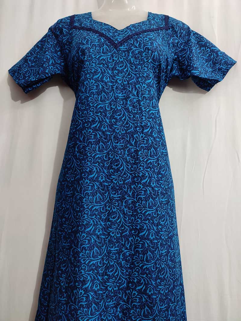 Comfortable Churidar Model Cotton Nighty - 55 Inches Long - Blue